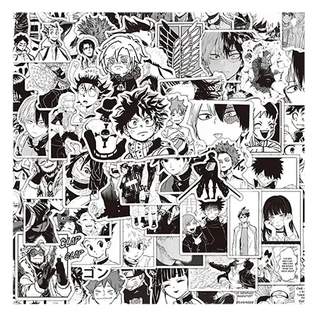 50/100 قطعة من ملصقات الأنمي باللونين الأبيض والأسود لتزيين حقيبة السفر وكتابة القصاصات